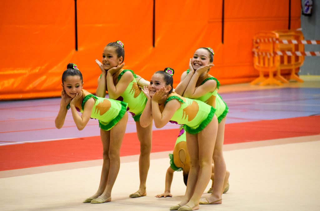 Este fin de semana cuatro de nuestros conjuntos participaron en la Segunda Fase de Escuelas de Federación Madrileña de Gimnasia. El sábado benjamines e infantiles se desplazaron a Arganda. Inició la competición el Conjunto Infantil. Algunas imprecisiones con los aros...